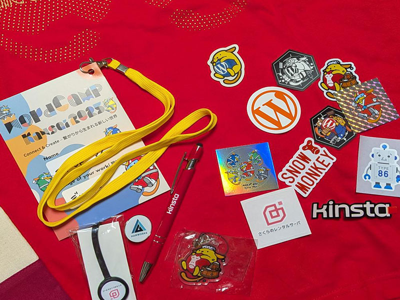 会場に到着してまず向かったのがスポンサーブース。スタンプラリーをしながら各社のブースを回っていると、「お宝」入りのポチ袋を発見!中にはわぷー(Wapuu)(ja.wordpress.org の公式キャラクター)のステッカーがたくさん入っていて、WordPressファンの私はうれしくて、テンションが上がりました。笑